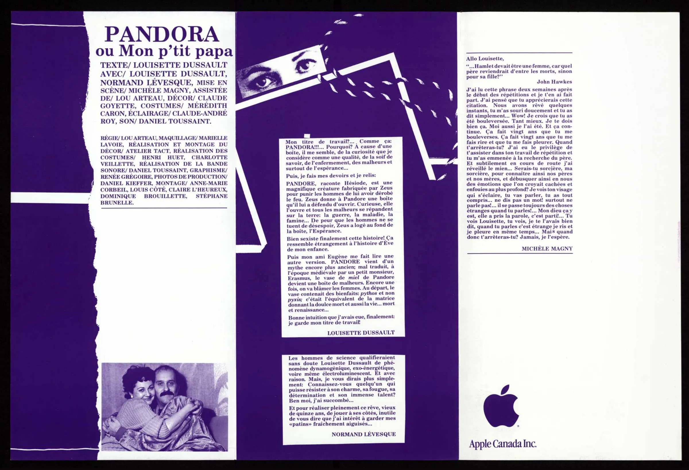« Au lendemain de la première, j’écrivais pour un bon spectacle, c’en est un bon et c’en est même un bon de bon. Après avoir assisté hier soir à la première de la nouvelle série de représentations […] je n’ai aucune envie de modifier le jugement fait en 1974. Je serais plutôt enclin à en remettre un tout petit peu. Le texte de Jean-Claude Germain est toujours l’un des meilleurs qu’il ait écrit […] la musique de Perron est toujours extraordinaire […] la mise en scène est toujours très inventive et à peu près sans bavures […] les décors, les costumes et les éclairages sont toujours excellents. Et surtout Nicole Leblanc réussit toujours une performance exceptionnelle. […] Il faut d’ailleurs le voir pour le croire ! »