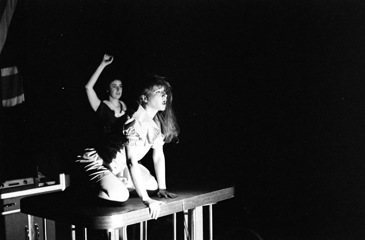 Au début de la deuxième étape de notre travail sur la Trilogie des Dragons, nous avons tiré le spectacle au Yi King, un jeu de divination chinois. Cela a donné Le Puits, c’est-à-dire l’invitation à puiser plus profondément dans la terre, parmi les pierres et les racines. C’est ce que nous avons fait. Mais pendant que nous étions occupés à fouiller le sous-sol, des personnages ont poussé à la surface, les bras tendus vers le ciel et l’intérieur plein comme le tronc d’un arbre. Dans la version de la Trilogie que vous verrez ce soir, la place est donc faite aux personnages qui viennent cette fois tresser les fils du récit esquissé à la première étape. La fusion des propositions scéniques des créatrices et des créateurs s’est faite de façon quasi organique et les idées ont été lancées en l’air pour se déposer tout naturellement, comme des feuilles à l’automne.